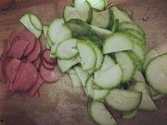 1. 炒角瓜:将角瓜切片,加入蒜末、辣椒等调料,快速翻炒至熟。